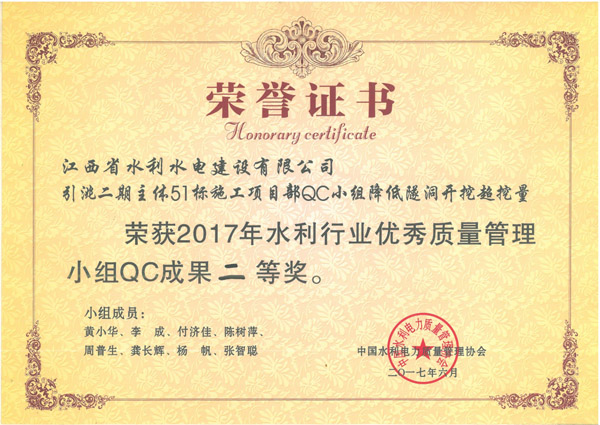公司連續3年獲水利行業優秀QC小組成果獎