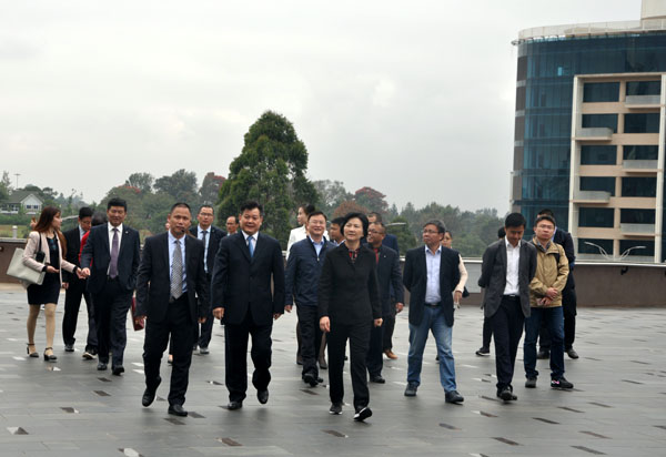 訪問團(tuán)一行首先參觀了雙河商貿(mào)中心,對雙河項(xiàng)目給予了充分肯定。座談期間,公司董事長王元旦及江西國際、江西中煤等駐肯企業(yè)代表逐一就企業(yè)在肯尼亞的發(fā)展情況進(jìn)行匯報(bào)。馮桃蓮主任充分贊揚(yáng)了江西企業(yè)在肯尼亞的各項(xiàng)優(yōu)秀業(yè)績,同時(shí)指出,在省委、省政府的正確領(lǐng)導(dǎo)下,希望各駐肯企業(yè)能夠緊密合作、抱團(tuán)發(fā)展,加強(qiáng)安全管控,提升企業(yè)抗風(fēng)險(xiǎn)能力,樹立良好的企業(yè)形象。